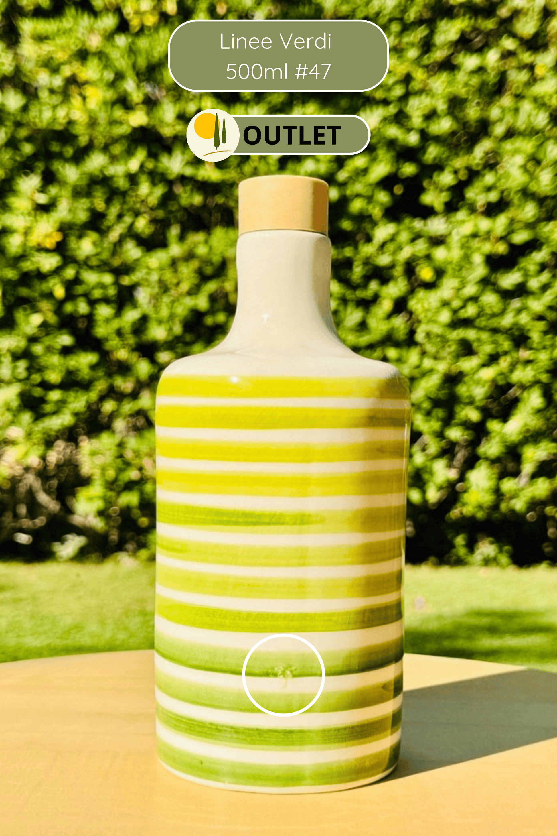 Ceramic bottle "Linee Verdi o Blu" for olive oil handmade in Italy