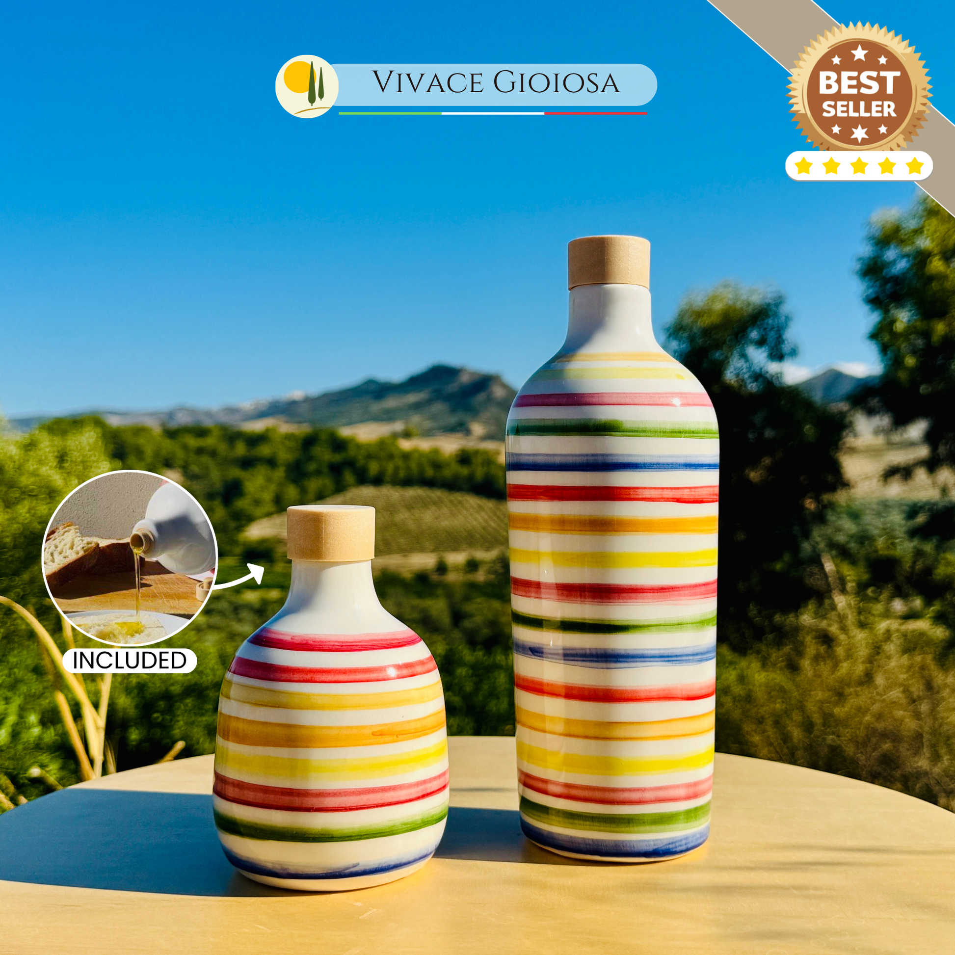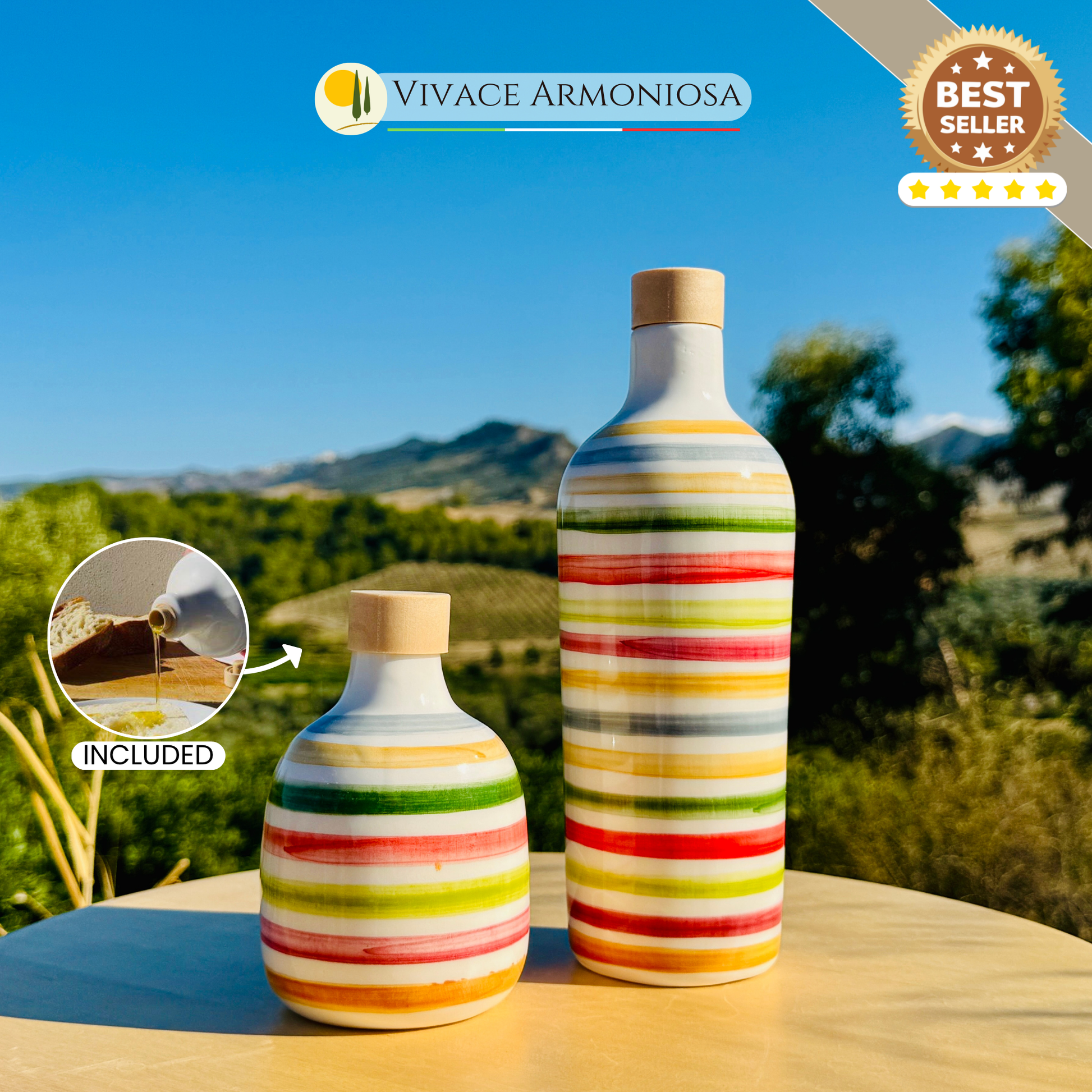 Bunte Keramikflasche Ölspender für Olivenöl handgemacht in Italien "Elegante"